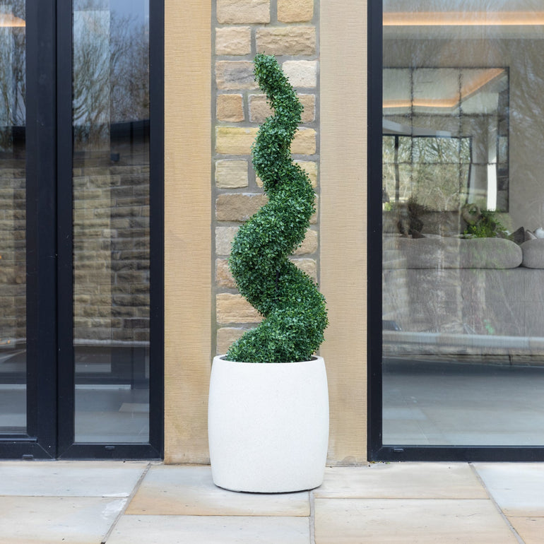 Artificial Buxus Spiral Topiary in White Planter